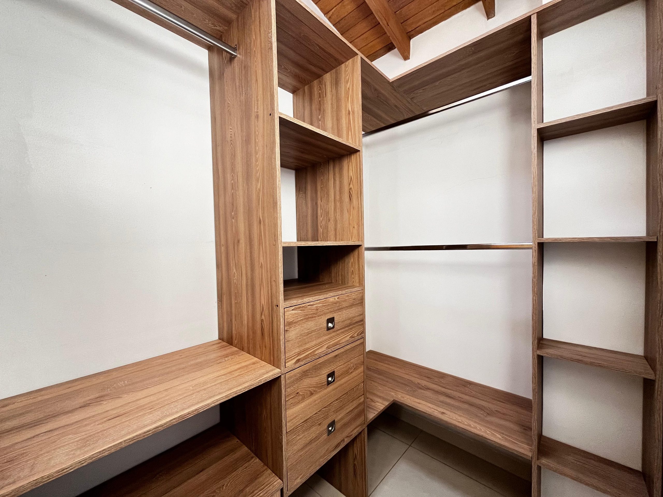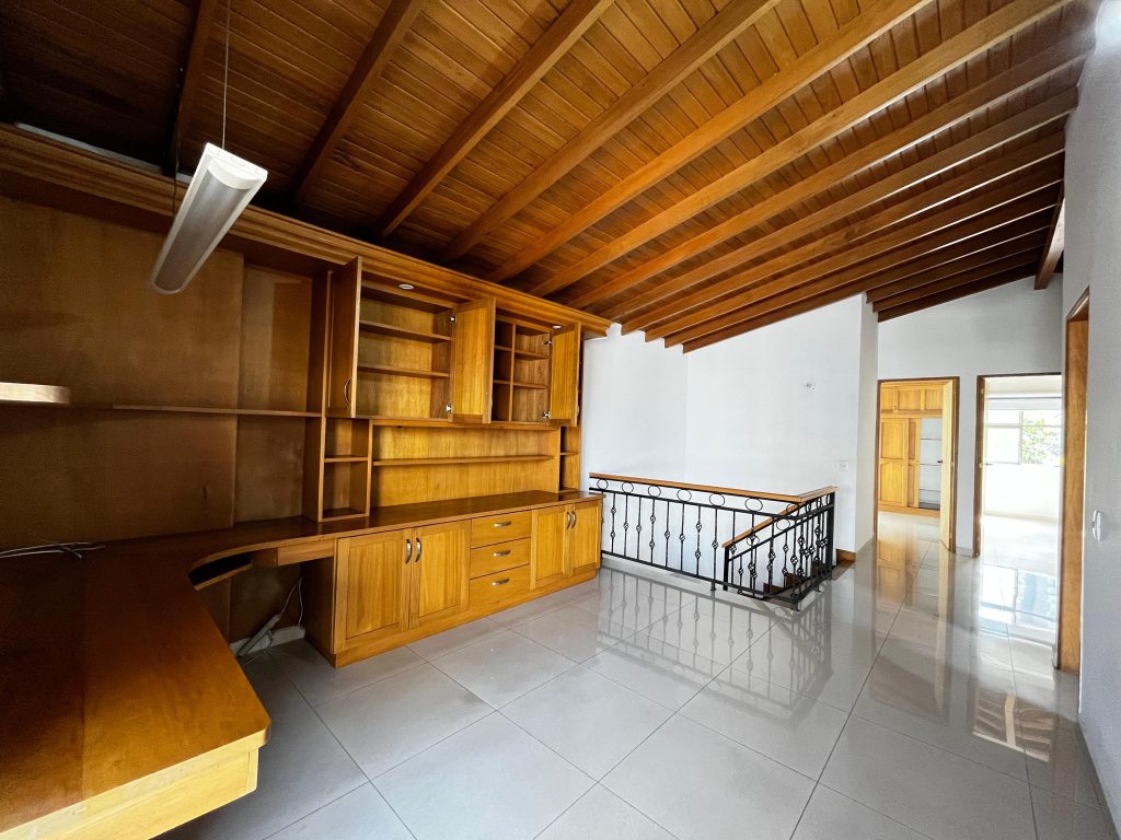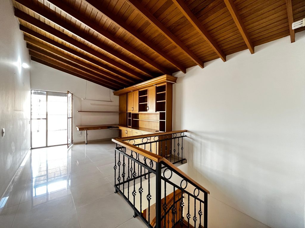 En el segundo nivel se encuentra la alcoba principal con vestier y baño, 2 alcobas auxiliares cada una con closet, 1 baño familiar, biblioteca con salida a la terraza. Excelente iluminación natural.
